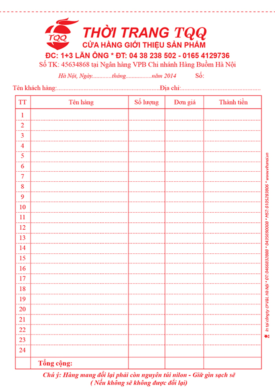 In hóa đơn bán hàng tại Mỹ Đình, In hóa đơn bán lẻ tại Quận Nam Từ Liêm, In phiếu giao hàng giá rẻ tại quận Bắc Từ Liêm